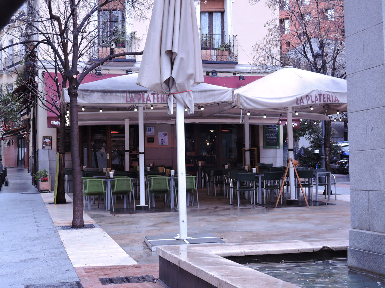 噴水後ろのレストラン。