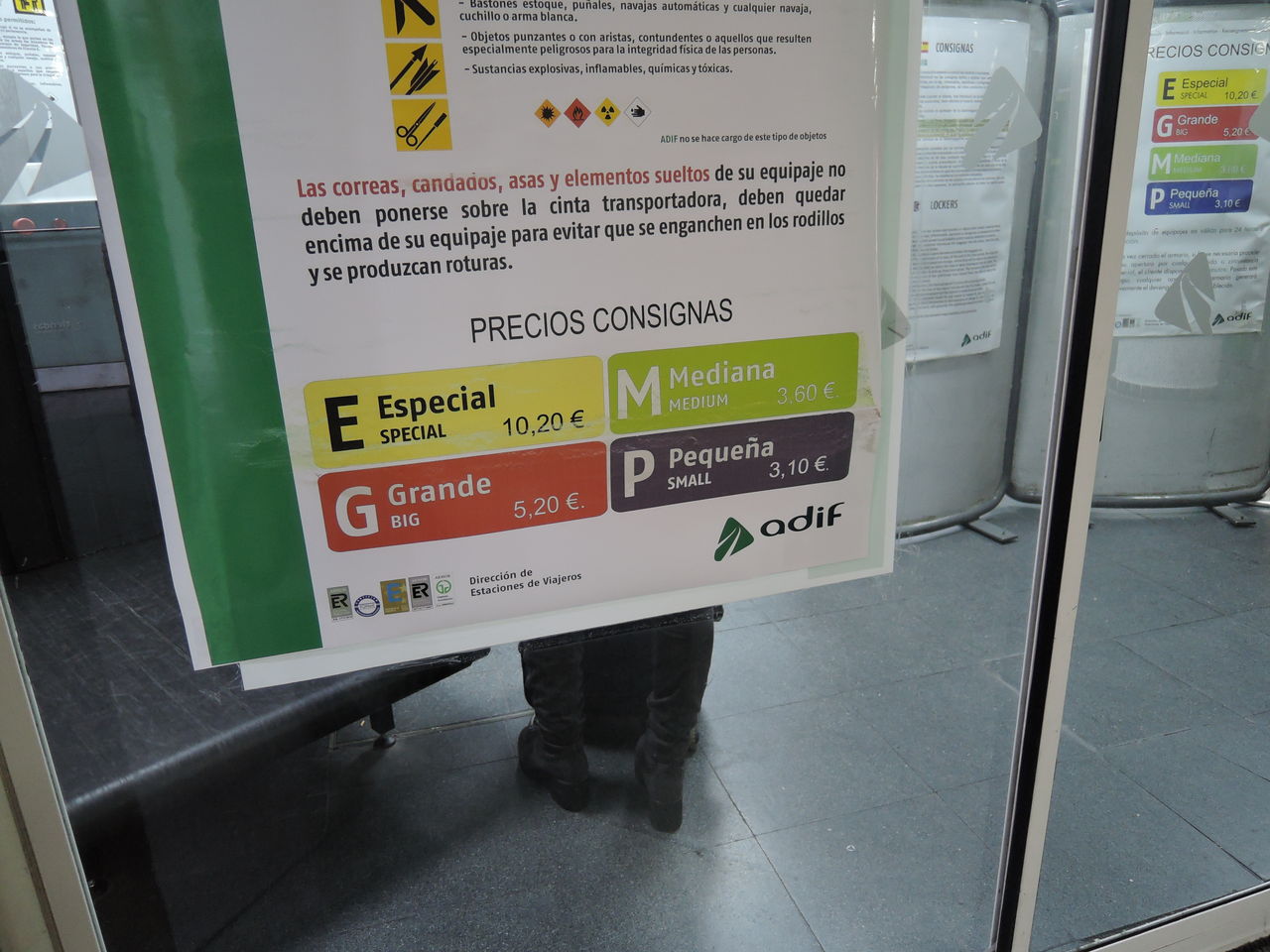 Mサイズで3.6ユーロ。中型のスーツケースと手荷物が入ります。マドリード最終日に荷物を預けるため、確認に来ました。