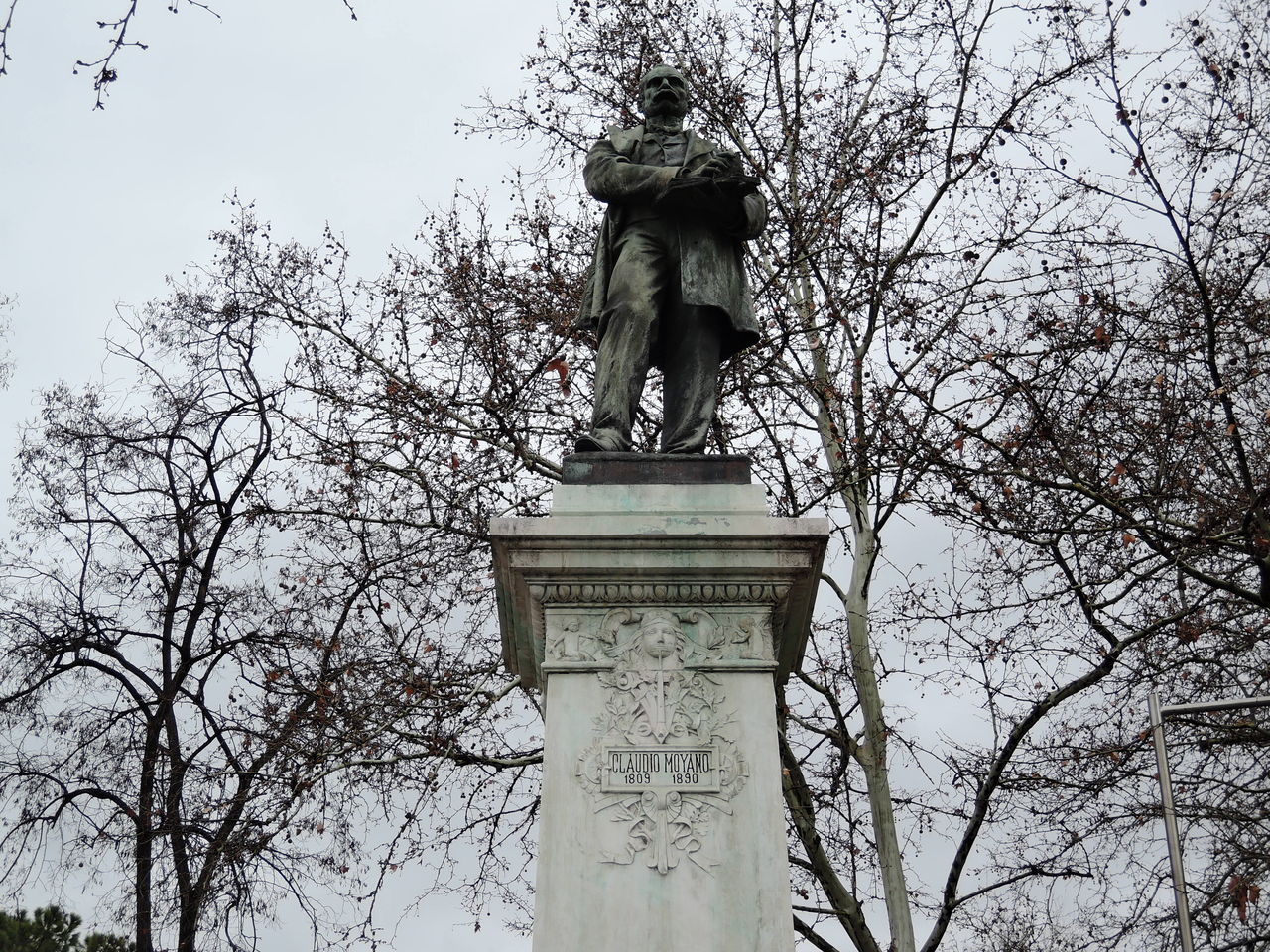 スペインの政治家、教育者 「クラウディオ・モヤノ(Claudio Moyano)」の像。クラウディオ・モヤノの丘の下にあり、前の道がクラウディオ・モヤノ通りです。クラウディオ・モヤノ通りと丘。ロティロ公園へ行けます。本屋さんが続きます。手前の公園にサクラが咲いています。桜とアトーチャ駅。絵になる景色です。