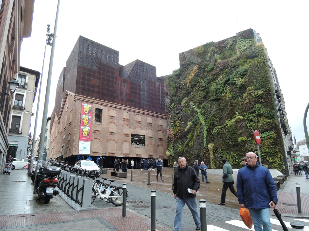 「CaixaForum Madrid」コンベンションセンター。展示会やアクティビティが出来る3つのフロアがあります。隣の建物はパトリック・ブランが設計した縦庭。芸術的空間というのでしょうか? 今回はマドリードに来るのが2回目なので、メインストリートからちょっと横の道に入ってみました。