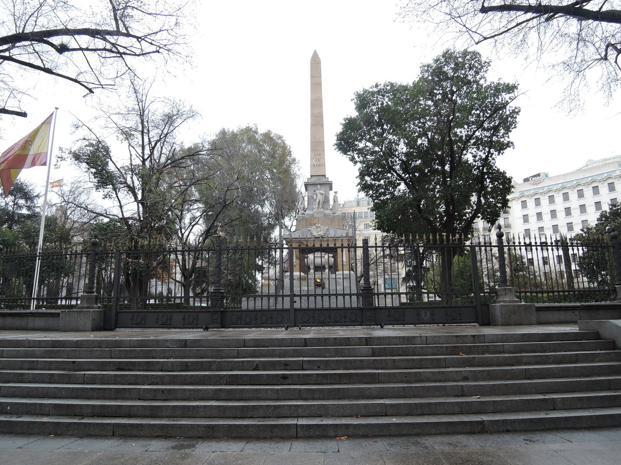 「オベリスクの英雄への記念碑 」Monumento a losHéroesdel Dos de Mayo 。スペインに命を捧げたすべての人々の戦争記念碑。火が灯り続けています。