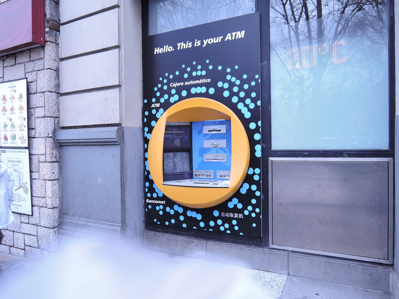 プラド通りに戻ってきました。気配りのATMを見つけました。画面が正面でなく横についています。陽が当たって画面が見にくいのが避けられます。